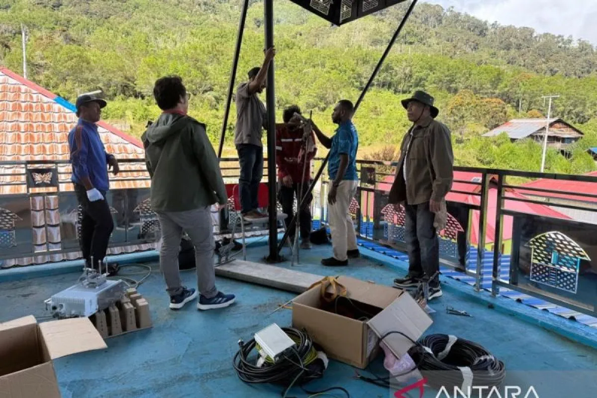 Tim teknis Telkomsel dan Diskominfo Provinsi Papua Barat melakukan pemasangan peralatan jaringan internet di Distrik Hingk, Kabupaten Pegunungan Arfak. ANTARA/HO-Diskominfo Papua Barat