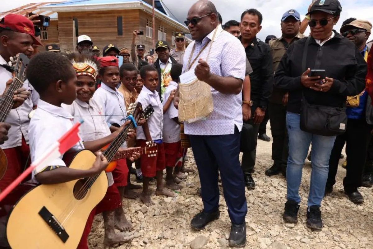 Gubernur Papua Tengah Meki Fritz Nawipa (Kedua kiri) disambut peserta didik di Kabupaten Dieyai ANTARA/HO-Humas Setda Pemprov Papua Tengah
