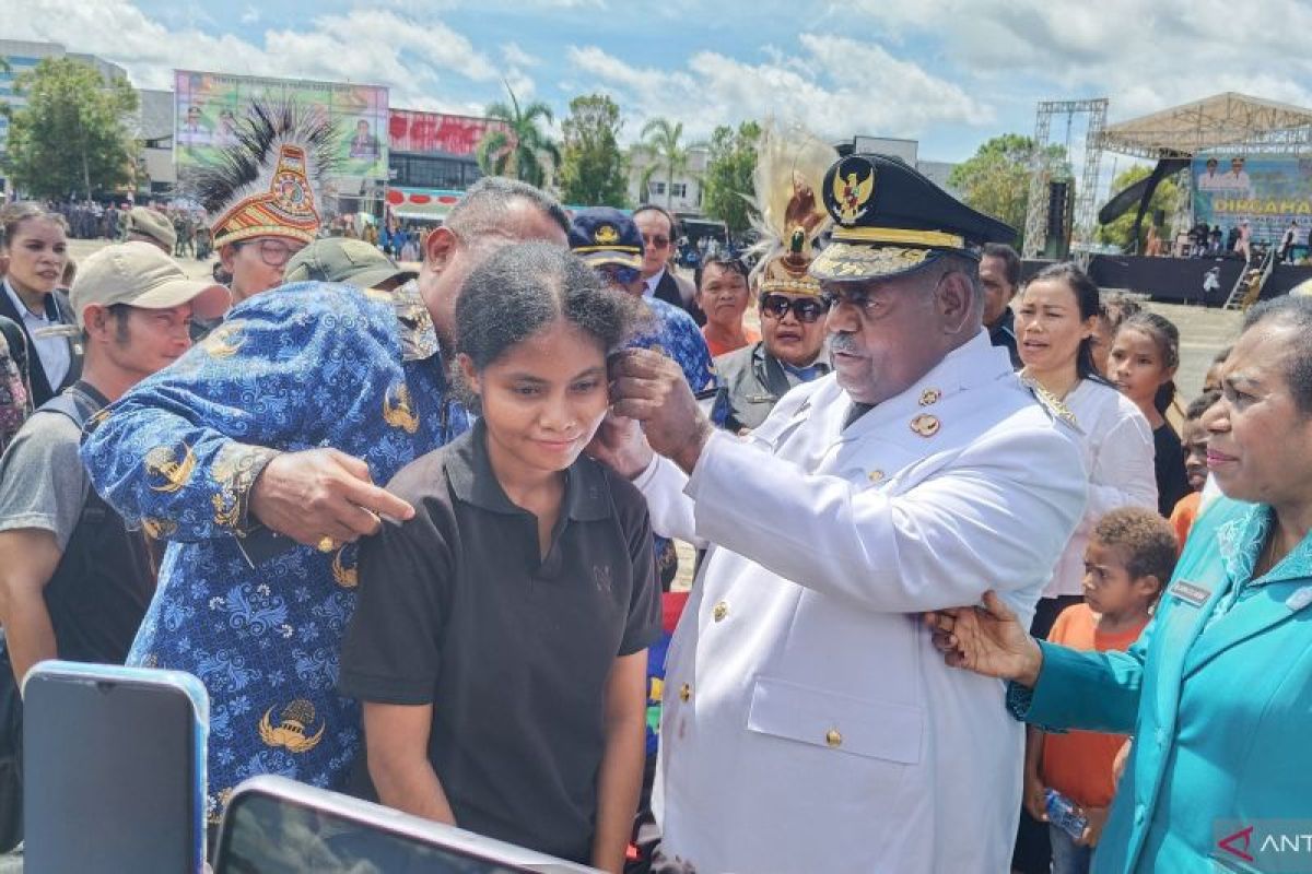 Penyerahan bantuan dilakukan langsung Gubernur Papua Barat Daya, Elisa Kambu pada peringatan HUT Ke-3 Provinsi Papua Barat Daya di Alun-Alun Aimas, Kabupaten Sorong, Senin.