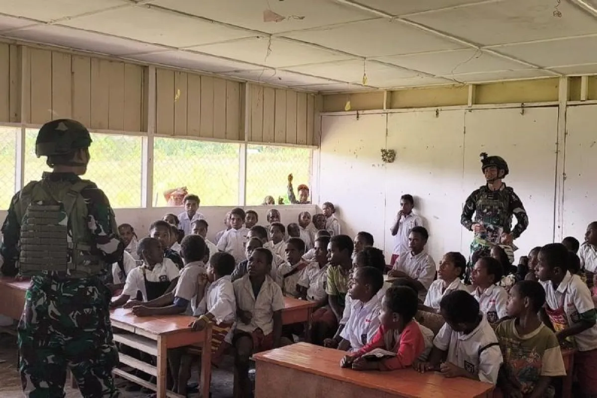Kegiatan teritorial yang dilakukan prajurit Satgas Yonif 521/DY sebagai bentuk dukungan terhadap dunia pendidikan di Papua, khususnya di Distrik Walesi.