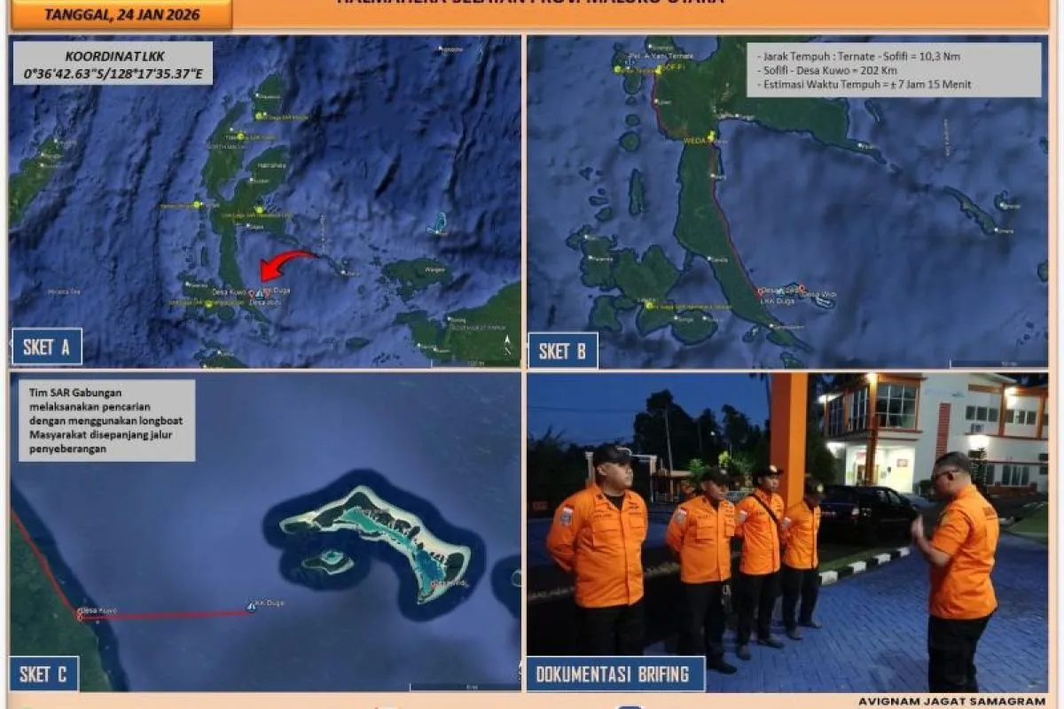 Pada 24 Januari 2026 pukul 06.50 WIT, kata dia, rekan korban, Robert, melaporkan kejadian tersebut ke Kantor SAR Ternate dan meminta perbantuan SAR.