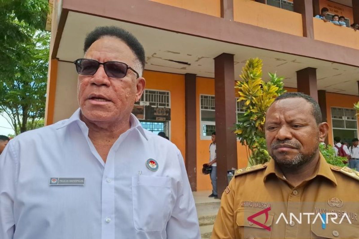 Wakil Gubernur Papua Barat Daya Ahmad Nausrau (kanan) dan Anggota Komite Eksekutif Percepatan Pembangunan Papua Komjen Pol (Purn), Paulus Waterpauw (kiri) saat berkunjung ke SMA Negeri 2 Kota Sorong, Senin (9/2/2026). ANTARA/Yuvensius Lasa Banafanu