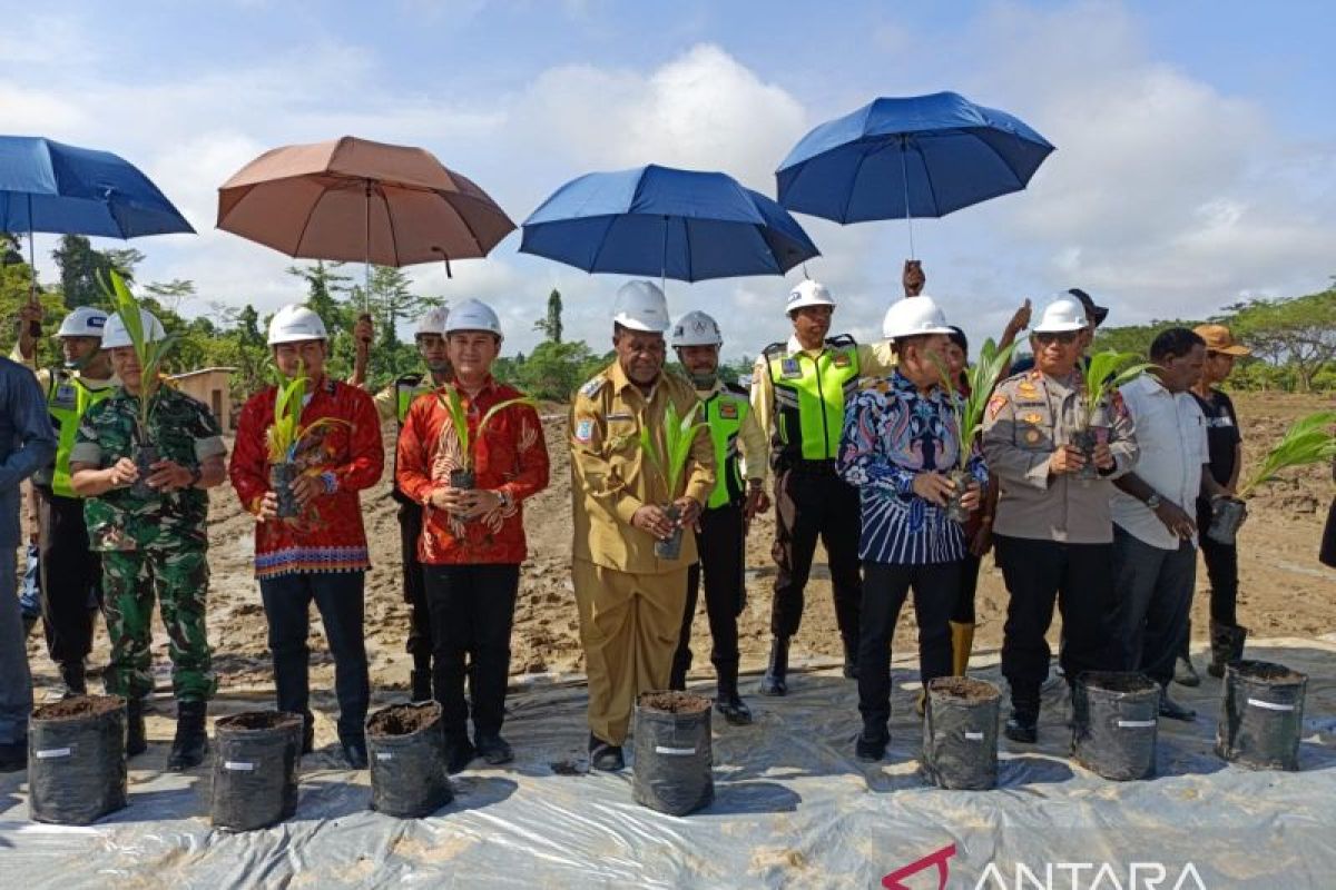 Bupati Sorong dan pihak perusahaan membukan penanaman bibit di kebun plasma di Kabupaten Sorong, Selasa (31/3/2026) (ANTARA/Yuvensius Lasa Banafanu)