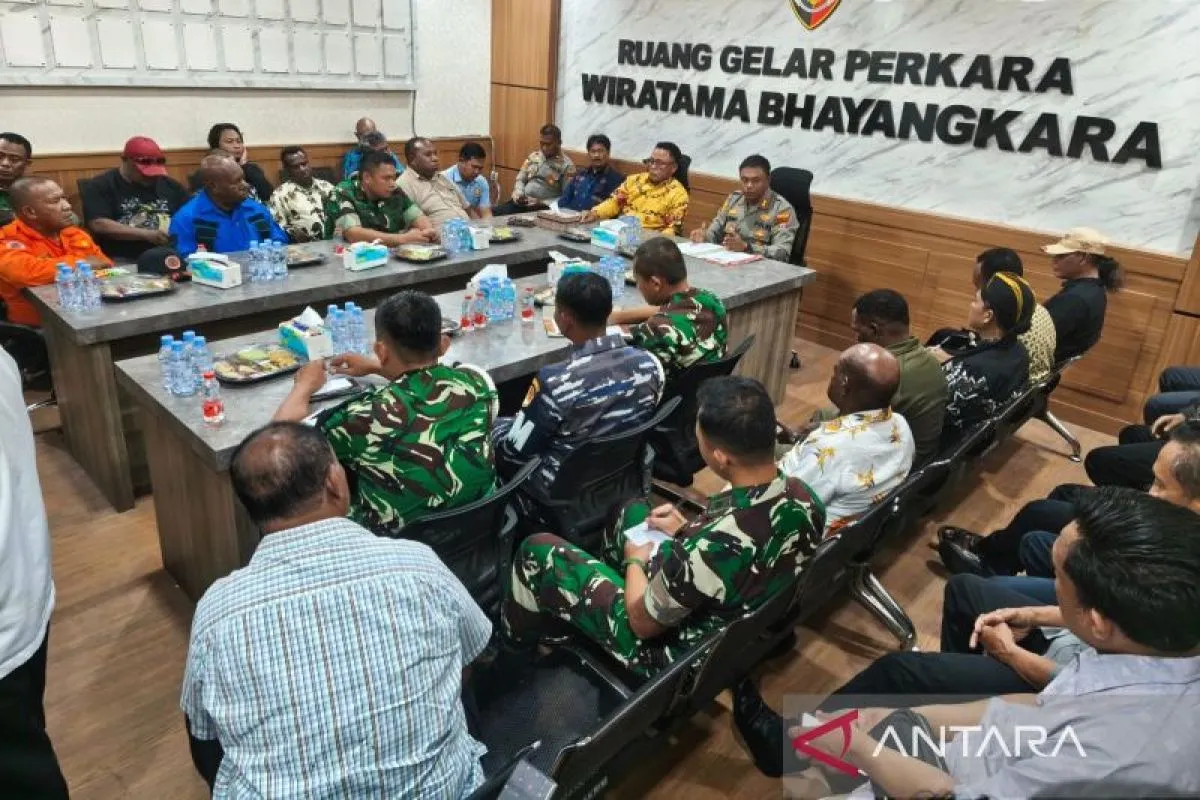 Rakor antisipasi aksi Front Rakyat Bergerak yang diselenggarakan Polres Nabire, TNI, Pemkab Nabire dan tokoh-tokoh masyarakat di Mapolres Nabire, Senin (6/4/2026). ANTARA/Ali Nur Ichsan